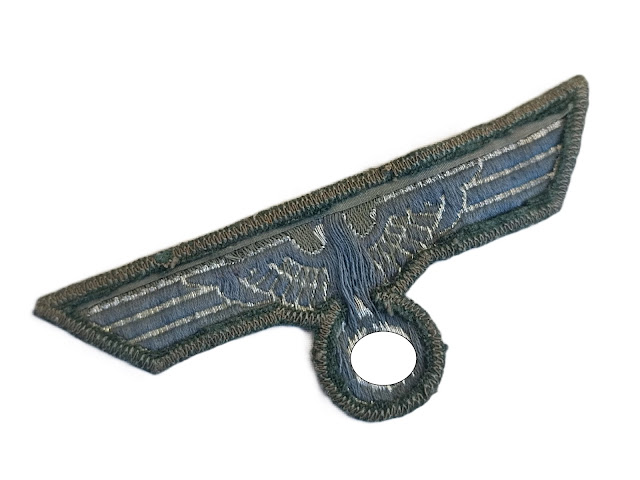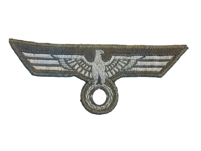 Aigle précoce de poitrine, tissé argent sur fond beige.