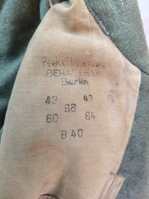 Il est à noter que ce blouson réceptionné en 1940 est un des tout premiers produit ( le blouson en drap feldgrau est adopté en mai 1940), c’est d’ailleurs le premier blouson vert précoce que j’ ai l’occasion de rencontrer.