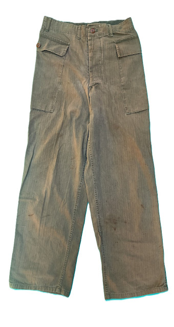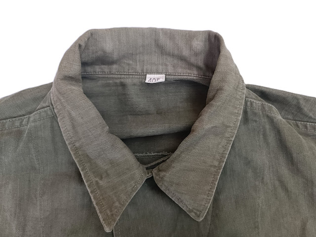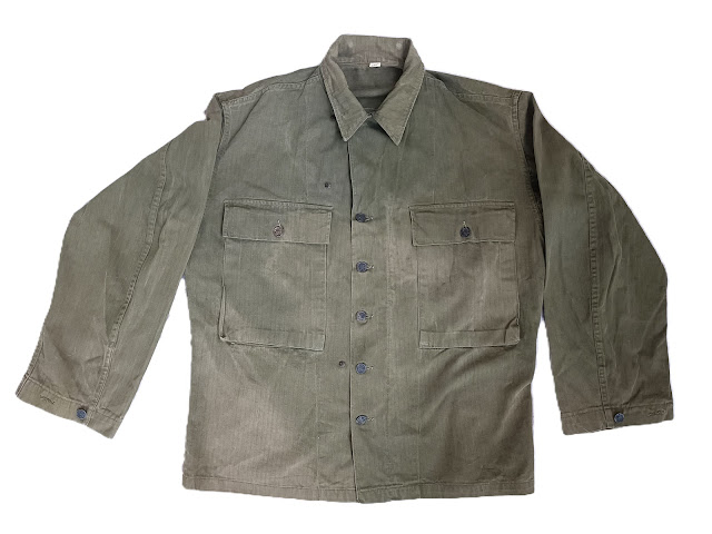 Très beau blouson M41 règlementaire porté par un officier, grades de capitaine fixés sur les pattes d’épaules ( modèle seconde guerre à épingles) bande cuir patronymique montée d’origine, on note la trace d’un patch de poitrine, enlevée pour une utilisation du blouson au combat ( pourrait être glider, pilote, parachutiste portant un blouson etc..)