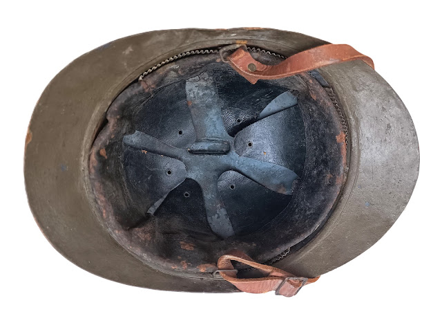 Très beau casque de combat typique des combats de 40, pièce jamais touchée , sorti de famille il y a quelques mois avec le casque Adrian BH M15 proposé ci-dessous.