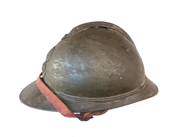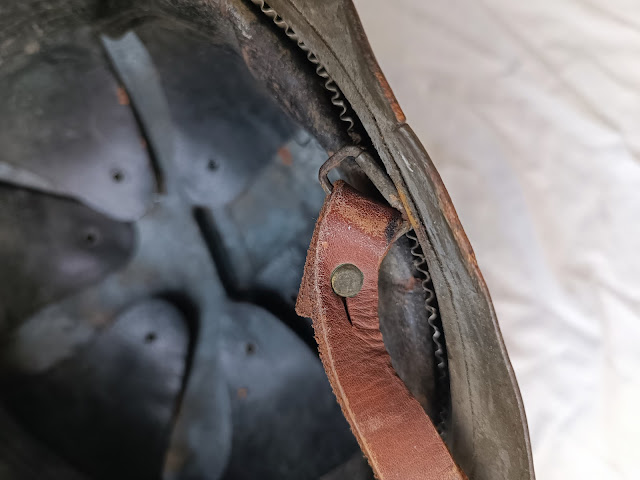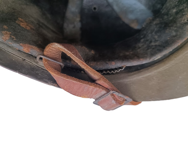 Peinture kaki appliquée au pinceau , il s’agit d’un reconditionnement de 1940, une jugulaire