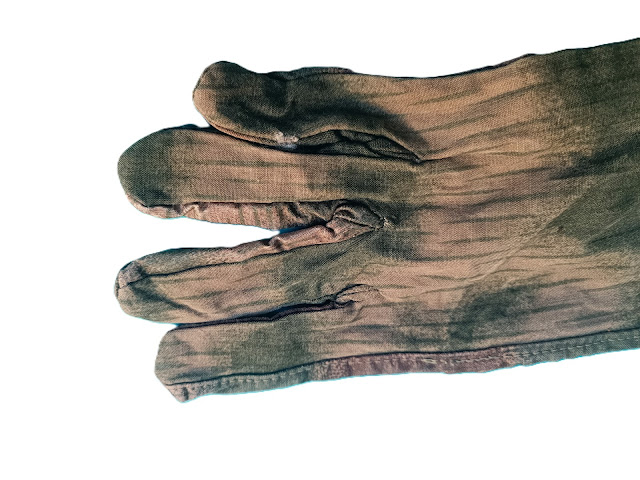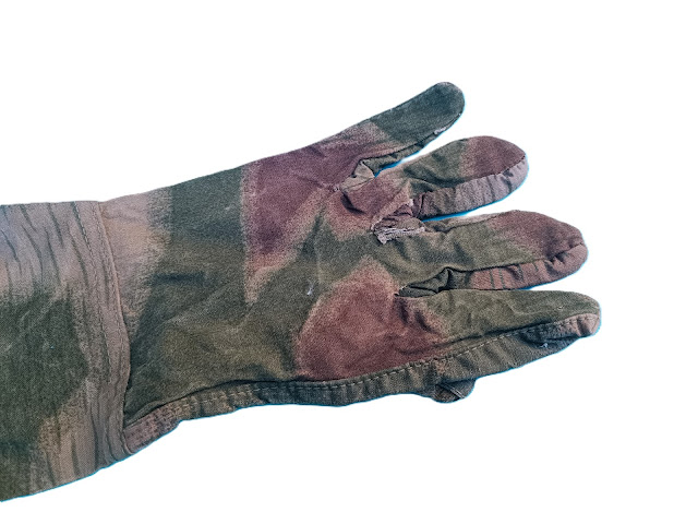 Gants en rayonne camouflée flou, destinés à être portés avec la blouse camouflée à lacet