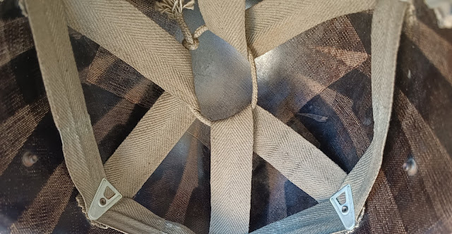 La coiffe du liner a été reconditionné par l’armée française post-45, le sweat band est US seconde guerre.