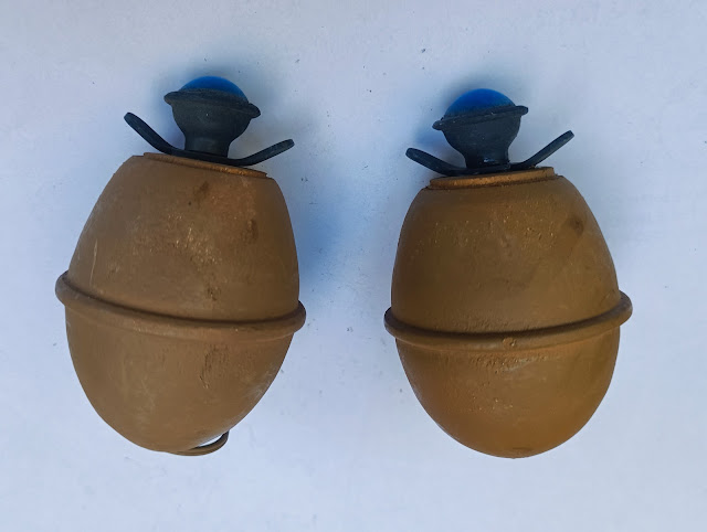 Très belles reproductions artisanales en résine de la rare grenade oeufs sable.