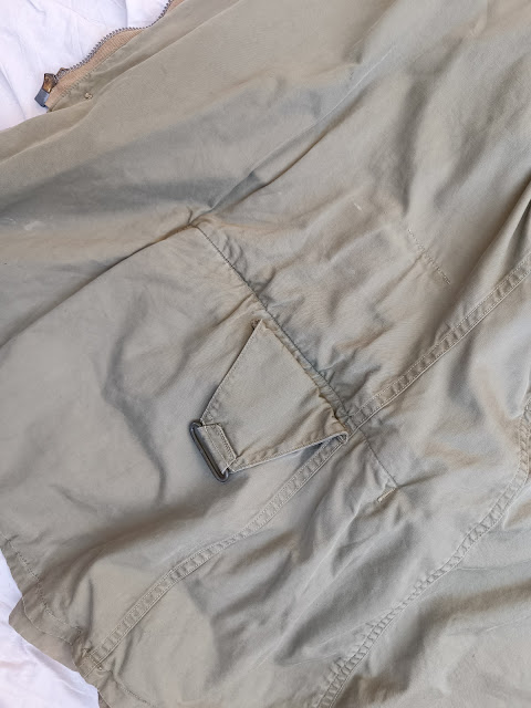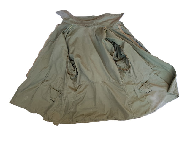Très bon état portée, le col et le bas des manches sont intacts, les bretelles internes comme c’est quasiment tout le temps le cas sur ces modèles sont absentes, les fermetures éclairs sont intactes et fonctionnelles.
